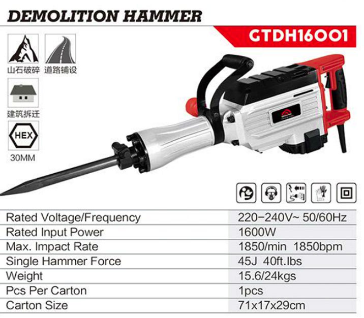 HomeTools & EquipmentPower ToolsPower Hammer Demolition Hammer GTDH16001